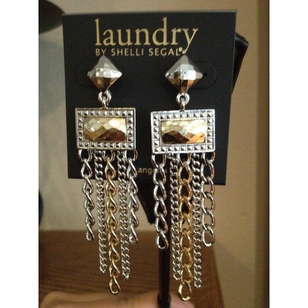 For a fun, flirty look, try on Laundry by Shelli Segal. The silver toned chandelier earrings add the perfect sparkle with its hint of gold.